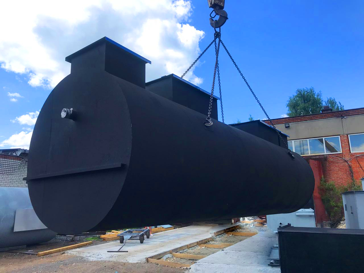Габариты очистного сооружения: длина 5800 / диаметр 2400 / вес 3500 кг.